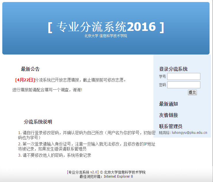 分流系统地址:http://162.105.71.47:8103/specialty/index.php